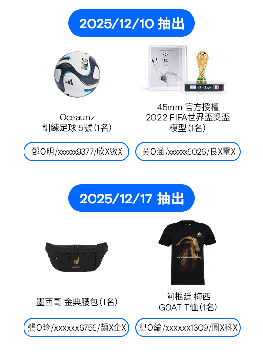 *得獎名單顯示方式:姓名/電話後四碼/購買門市